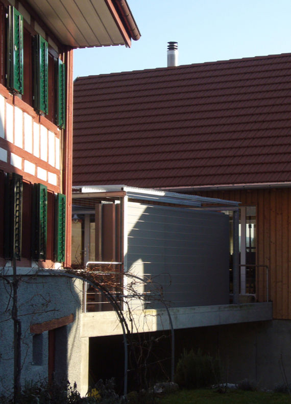 Ersatz für eine baufällige Scheune, ein gut nutzbares Atelier für einen freischaffenden Künstler, Stellplätze für Fahrzeuge und Boxen für Pferde, eine rundum erneuerte Wohnung und ein grosszügiger Sitzplatz gehörten zu dieser ungewohnten Bauaufgabe, die unter engen Verhältnissen und mit sehr knappen Mitteln im historischen Dorfkern zu lösen war. Geschaffen wurde unter anderem ein sehr einfacher, aber gut nutzbarer neuer Baukörper für die neuen Nutzungen, der sich auf bescheidene Art ins bestehende Baugefüge einordnet und eine neue Fassade dort, wo das alte Haus früher an die Scheune stiess.